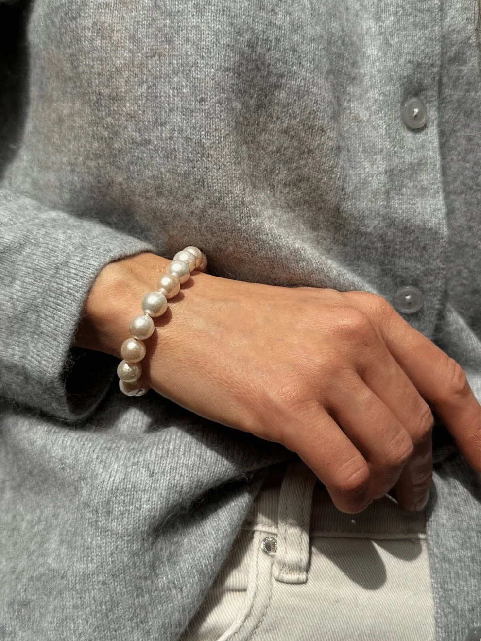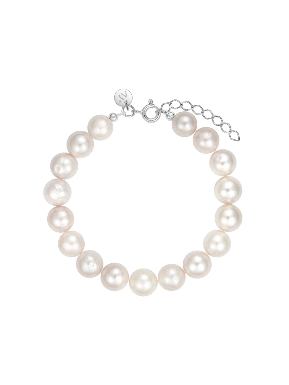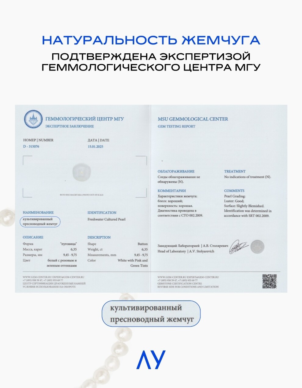 - В браслете используется пресноводный культивированный жемчуг размером 10 мм. Основа — ювелирный трос из стали с нейлоновой оболочкой. Фурнитура — серебро 925 пробы