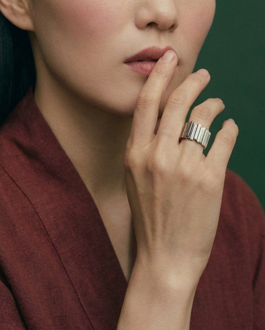 Очень красивое, объёмное кольцо с рельефными гранями и чернением. Подходит как мужчинам, так и женщинам.