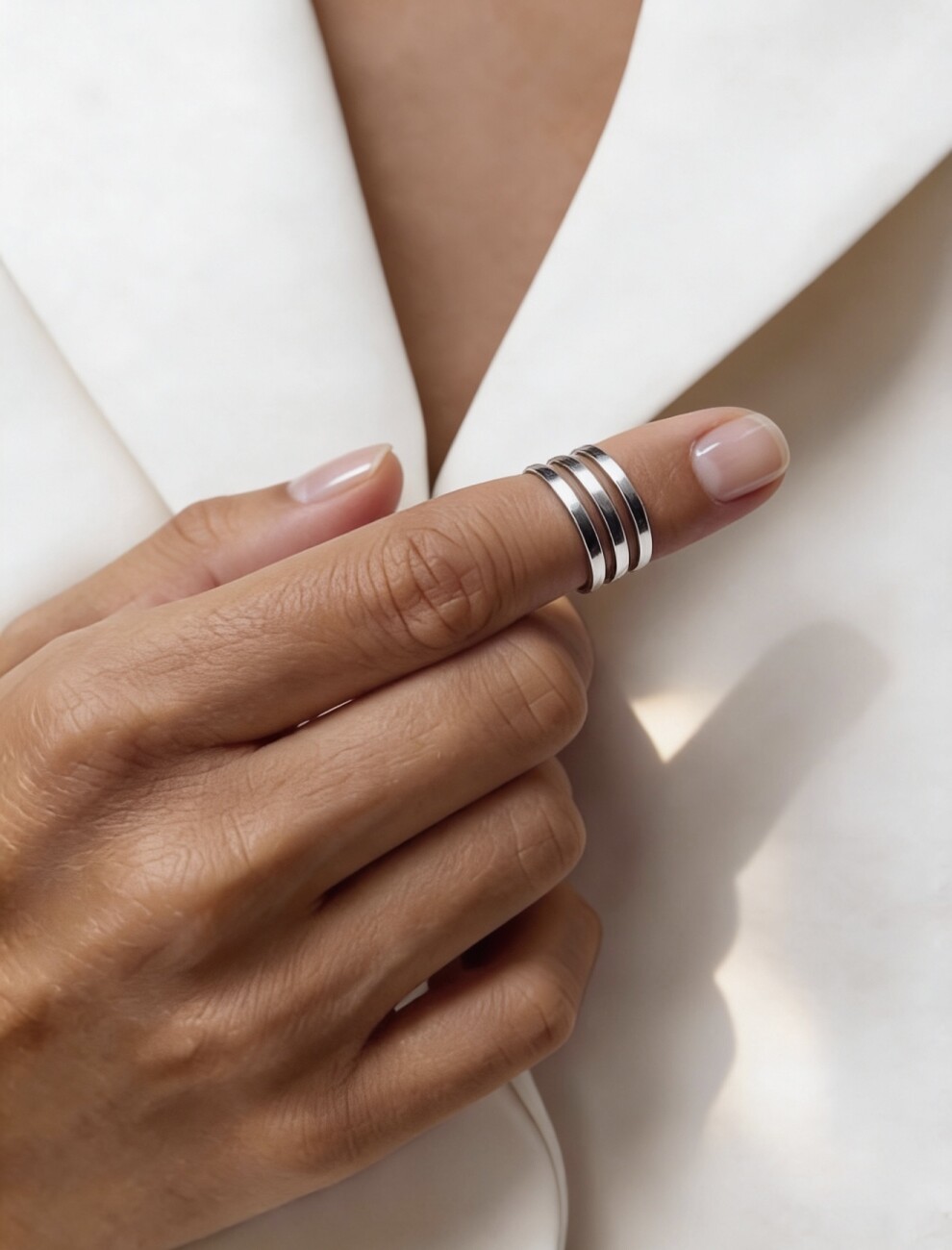 Тройное кольцо на фалангу ОЛИВИЯ входит в коллекцию ЛИНИИ и прекрасно дополняет сеты с другими кольцами в том же стиле. Оно такое невесомое, что cовсем не ощущается на руке.