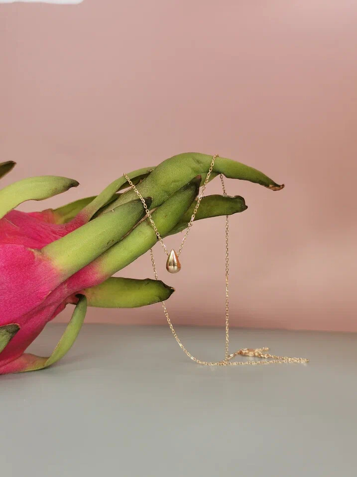 Элегантная подвеска на цепочке в форме капли. В сочетании с серьгами-пусетами составит идеальный комплект на каждый день.